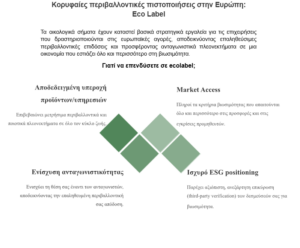 Το EU Ecolabel είναι το επίσημο οικολογικό σήμα της Ευρωπαϊκής Ένωσης και απονέμεται σε προϊόντα και υπηρεσίες με αποδεδειγμένα υψηλή περιβαλλοντική απόδοση καθ’ όλη τη διάρκεια του κύκλου ζωής τους. Αποτελεί ένα αξιόπιστο και ευρέως αναγνωρισμένο εργαλείο, που επιτρέπει στις επιχειρήσεις να διαφοροποιηθούν στην ευρωπαϊκή και διεθνή αγορά, αποδεικνύοντας τη δέσμευσή τους στη βιωσιμότητα. Οι απαιτήσεις που διέπουν το Οικολογικό Σήμα της ΕΕ(EU Ecolabel) περιγράφονται στον Κανονισμό (ΕΚ) 66/2010 του Ευρωπαϊκού Κοινοβουλίου. O εθνικός αρμόδιος φορέας για την απονομή του οικολογικού σήματος της ΕΕ είναι το Εθνικό Συμβούλιο Απονομής Οικολογικού Σήματος (ΕΣΑΟΣ). Το σήμα μπορεί να απονεμηθεί σε διαφορετικές κατηγορίες προϊόντων ή υπηρεσιών, υπό τον όρο ότι έχουν καθοριστεί σαφώς τα καλά καθορισμένα οικολογικά κριτήρια, όπως υπαγορεύονται από τον Κανονισμό 66/2010 / ΕΕ.